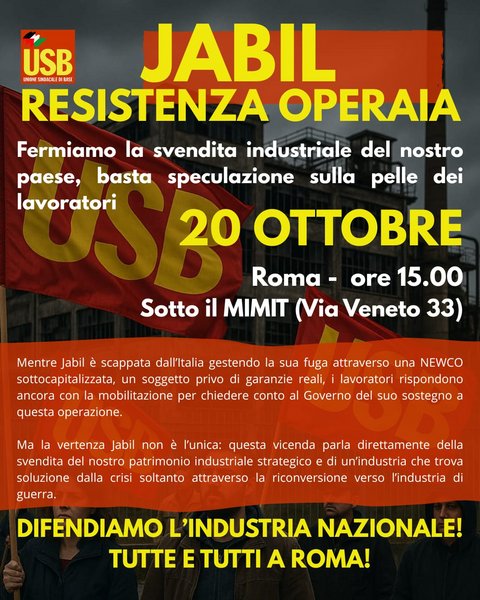 20 ottobre: tutti a Roma sotto il MIMIT con i lavoratori Jabil