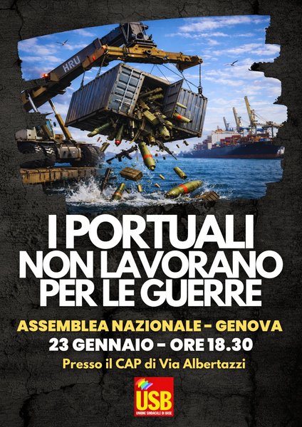 23 gennaio, Genova: i portuali non lavorano per la guerra, assemblea nazionale ore 18.00 presso il CAP, via Albertazzi 3. Verso lo sciopero internazionale del 6 febbraio