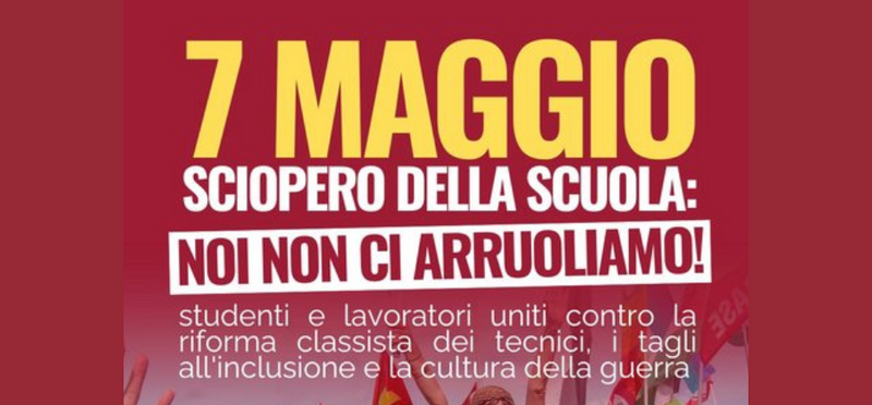 Sciopereremo insieme perché abbiamo un unico progetto: una scuola diversa da quella che il sistema capitalista in crisi ci sta imponendo. Rifiutiamo la scuola messa al servizio della guerra e dei privati e vogliamo costruire una risposta collettiva all'altezza della fase storica. Sciopereremo contro la militarizzazione della scuola e della società, contro la leva obbligatoria, contro la riforma degli istituti tecnici e professionali che consegna la formazione delle classi popolari direttamente nelle mani delle imprese e contro un rinnovo contrattuale che offre salari vergognosi in una fase in cui l'inflazione è destinata a crescere, trascinata dai costi di guerre che non abbiamo voluto e non vogliamo.
