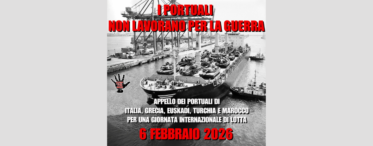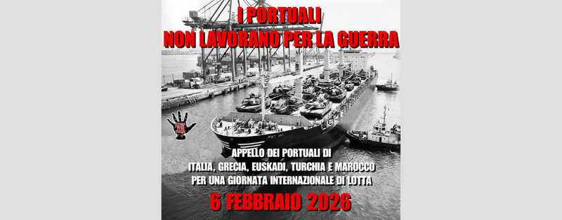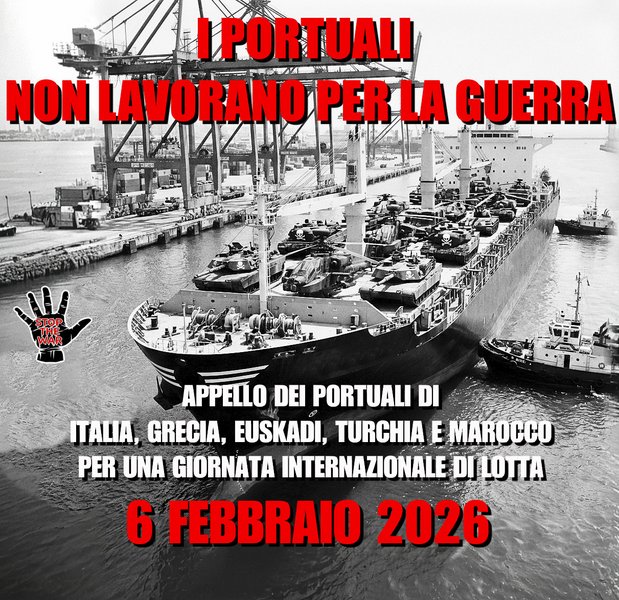 Condividendo il rifiuto verso qualsiasi complicità dei lavoratori portuali nel trasporto di armi e materiali bellici e per esprimere la nostra forte opposizione alle conseguenze dell'economia di guerra, i sindacati lanciano un forte appello per una Giornata internazionale di azione e lotta il 6 febbraio 2026.