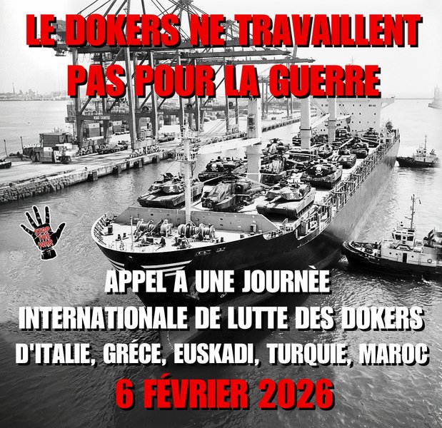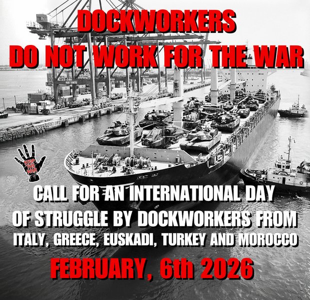 Sharing the determination to reject any complicity by port workers in the transport of weapons and war materials and to express our strong opposition to the consequences of the war economy, the trade unions launch a firm call for an International Day of Action and Struggle on February 6th, 2026.