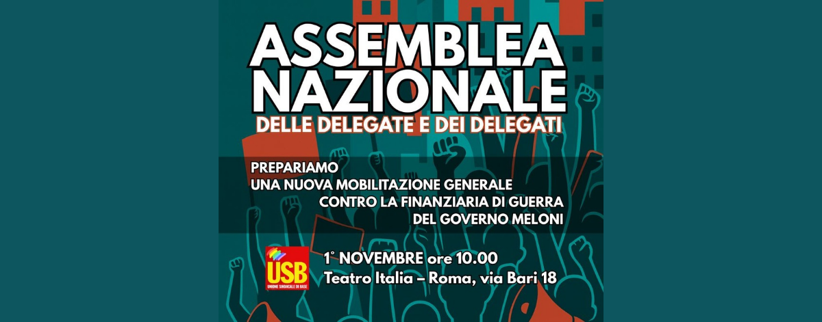 Assemblea nazionale dei delegati e delle delegate: contro la finanziaria di guerra, verso un nuovo sciopero generale. 1° novembre ore 10.00 Teatro Italia, Roma, via Bari 18