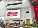 Nel pomeriggio l' ampia delegazione di attivisti provenienti da tutto il mondo e facenti parte del convoglio di terra della campagna Nuestra America Convoy è stata ricevuta al palazzo dei congressi de L'Avana dalle rappresentanze istituzionali del Governo Cubano, un incontro che si è concluso con il lungo intervento del Presidente del Consiglio di Stato Diaz Canel.