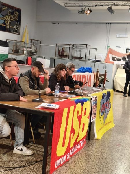 Dall'assemblea di venerdì 23 gennaio a Genova, organizzata da USB Porti, riparte la lotta dei lavoratori e delle lavoratrici portuali contro la guerra ed il traffico di armi: saranno almeno 21 i porti che si mobiliteranno in tutto il Mediterraneo per lo sciopero internazionale del prossimo 6 febbraio, mentre altri ancora se ne stanno aggiungendo.