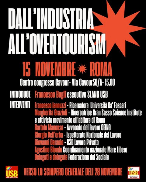 Dall'industria all'Overtourism: 15 Novembre Roma, h15.00 Centro Congressi Cavour