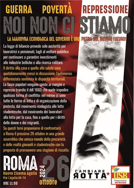 Guerra, povertà e repressione: noi non ci stiamo, la manovra economica del governo è una pietra sul nostro futuro. 26 ottobre assemblea nazionale indetta da Federazione del sociale e Cambiare rotta