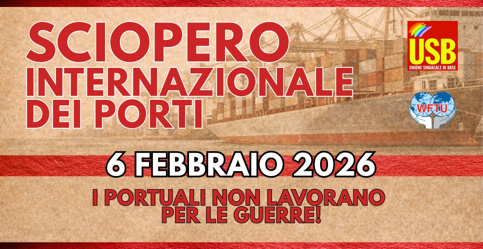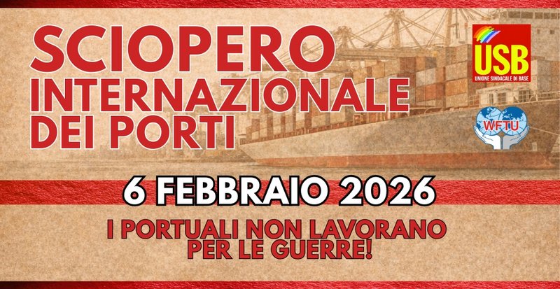 Con la conferenza online del 27 gennaio, le 5 organizzazioni sindacali rappresentative dei lavoratori portuali, l’Enedep di Grecia, il Lab dei Paesi Baschi, la Liman-Is della Turchia, l’ODT del Marocco e l’USB in Italia hanno confermato la giornata di lotta dei portuali del 6 febbraio con lo slogan “I portuali non lavorano per la guerra”.