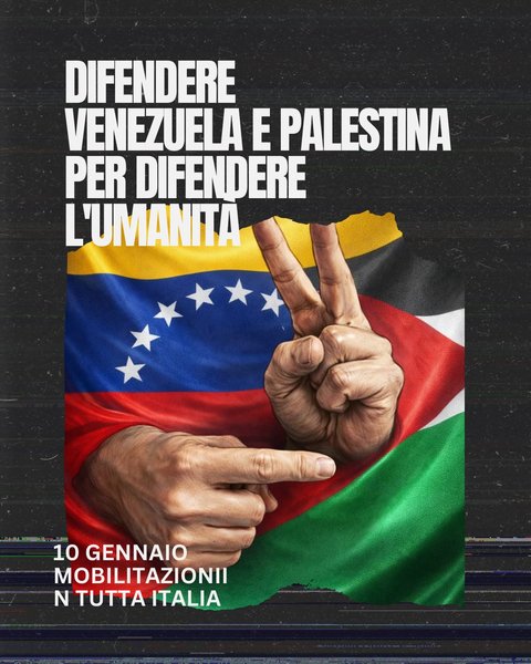 Per questo occorre tornare a riempire le piazze. Per difendere il Venezuela, che ha diritto non solo a poter gestire liberamente le proprie risorse naturali ma anche a difendere le conquiste sociali ottenute in questi anni e non tornare sotto il dominio neocoloniale. Per la Palestina, contro il genocidio e in solidarietà con tutti quelli che ingiustamente sono stati arrestati perché si sono battuti al suo fianco. Per fermare le politiche di riarmo della Nato e della Ue. Per mettere i nostri diritti sociali, i nostri salari, le nostre vite davanti agli interessi delle industrie di guerra, contro l’imperialismo e il colonialismo.