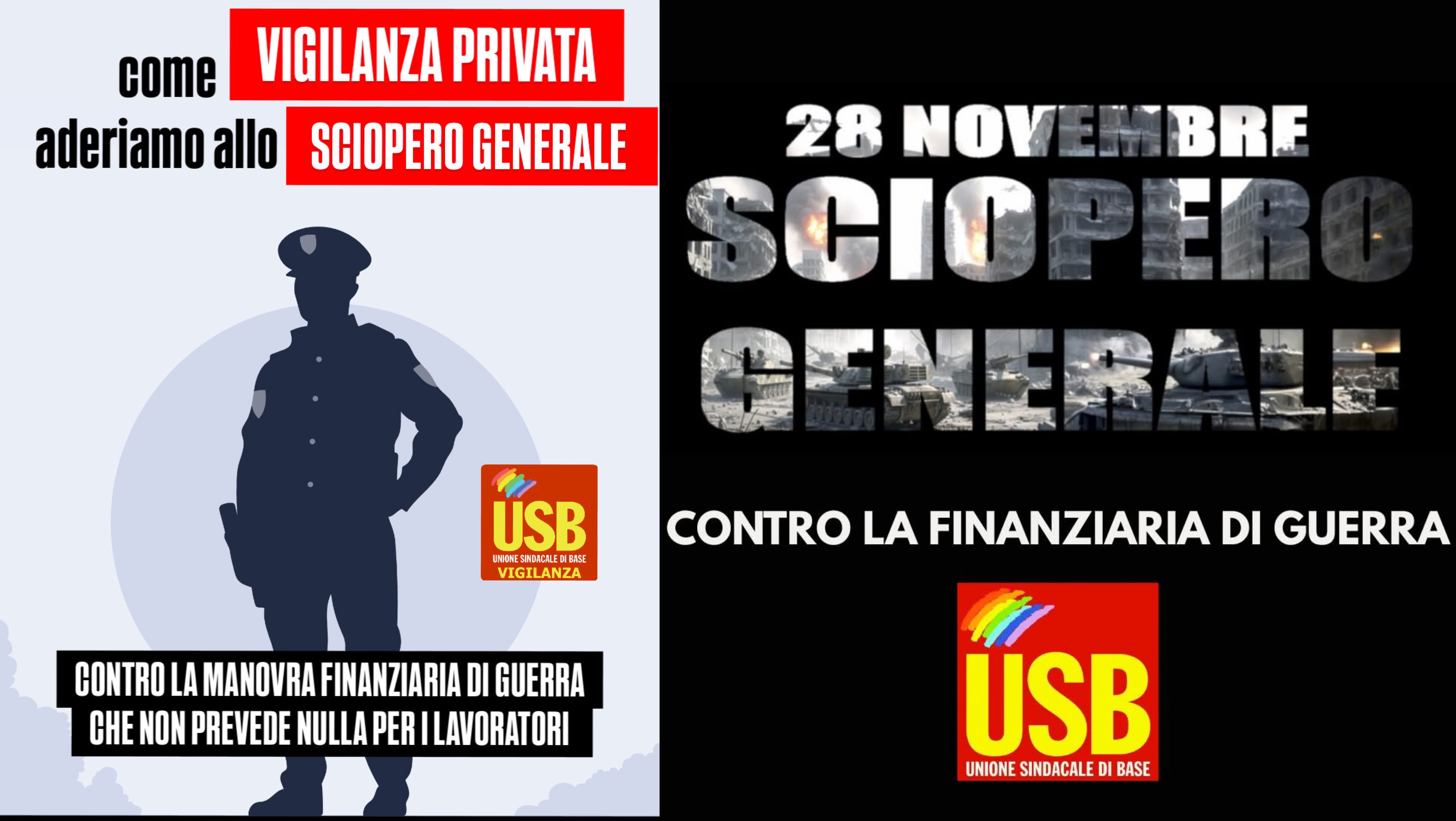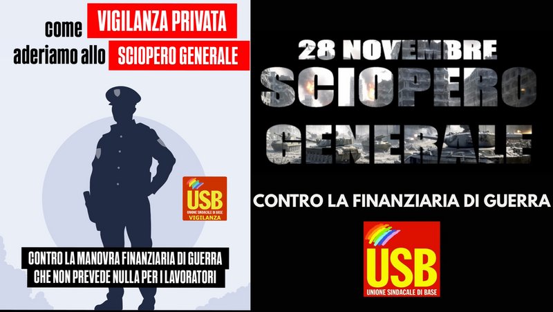 Il comparto della Vigilanza Privata e dei Servizi di Sicurezza aderisce allo sciopero generale del 28 novembre e alla manifestazione del 29 a Roma, perché questa Legge di Bilancio continua a ignorare la classe lavoratrice mentre alimenta un’economia di guerra che prosciuga scuola, sanità e servizi pubblici essenziali.
