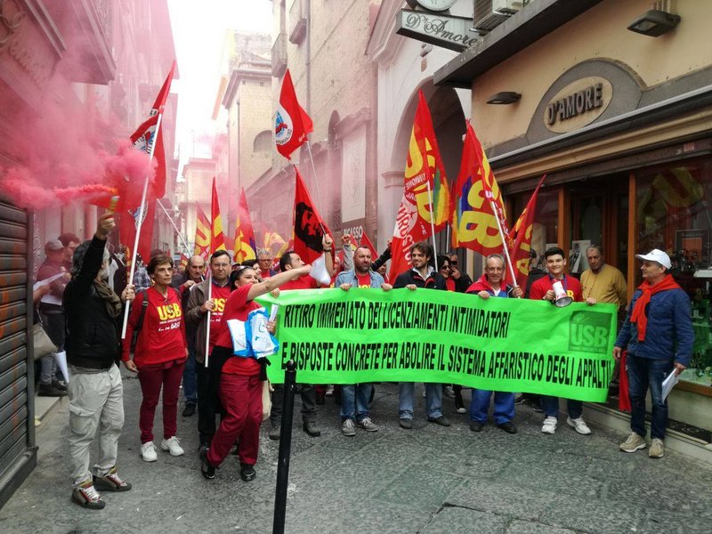 I dipendenti della FLASH srls del consorzio Seaman sono scesi in piazza al grido di “MO’ BASTA” per chiedere diritti, dignità, il pagamento regolare degli stipendi e il reintegro immediato di Gina Atripaldi, delegata sindacale Usb licenziata in tronco il 13 marzo, e degli altri licenziati per rappresaglia sindacale.