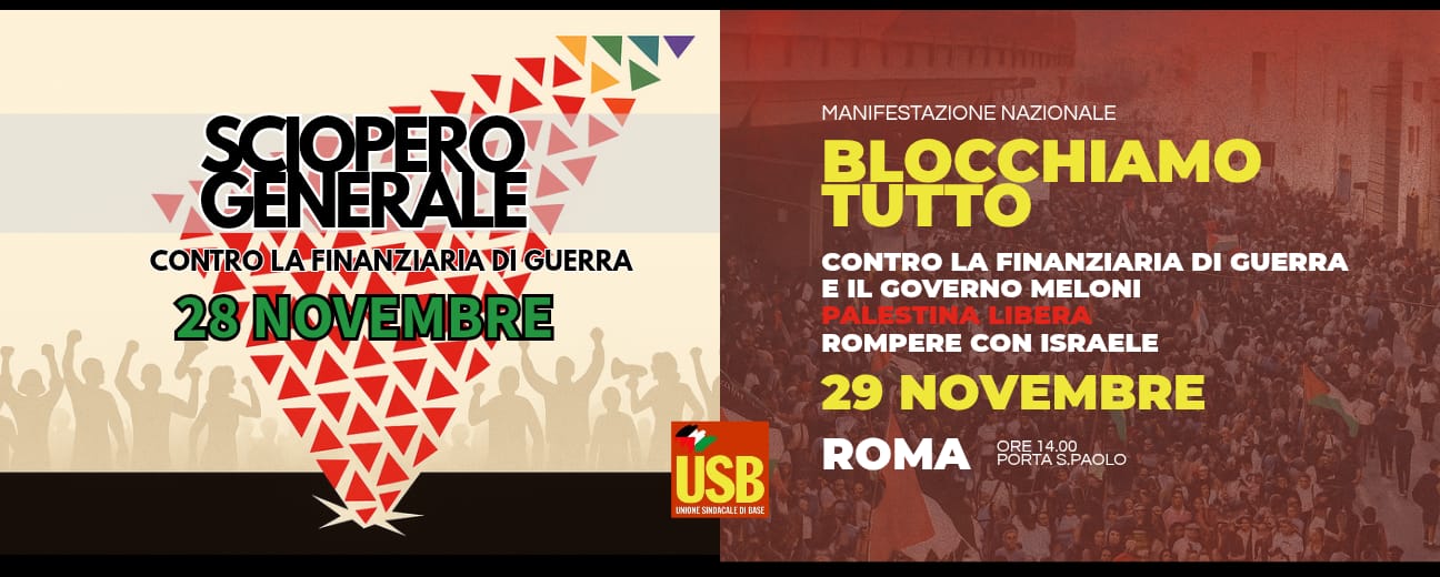 Il 28 novembre è sciopero generale contro la finanziaria di guerra del Governo Meloni, USB ha organizzato per quel giorno manifestazioni in tutta Italia: la lista è consultabile sul nostro sito a questo link.