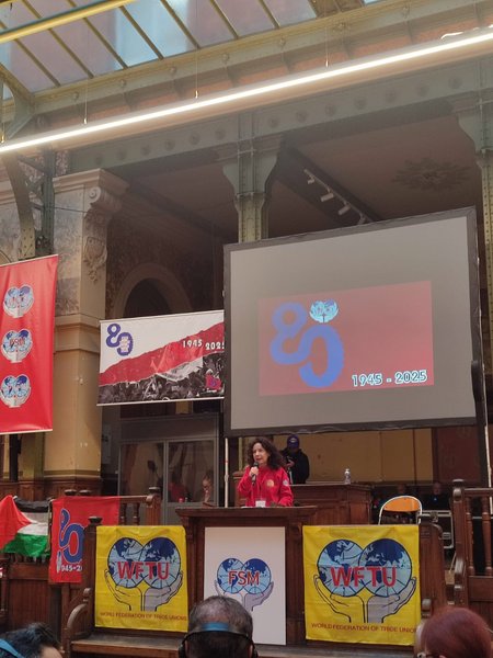 È un onore per me essere qui oggi, nel giorno degli 80 anni della nascita della Federazione Sindacale Mondiale.
