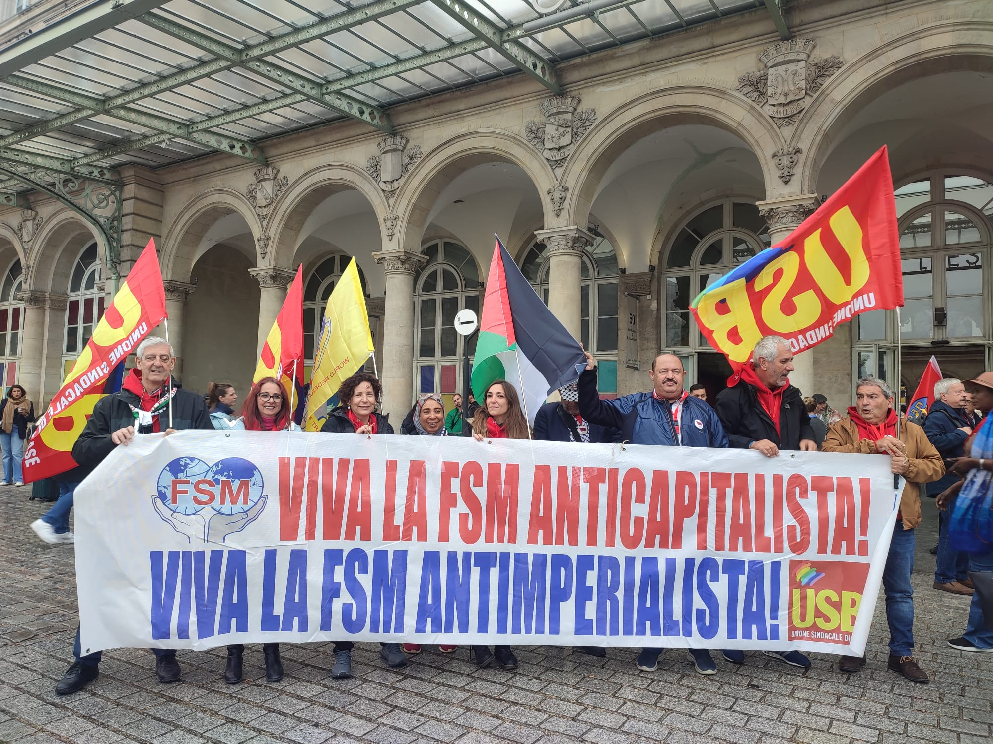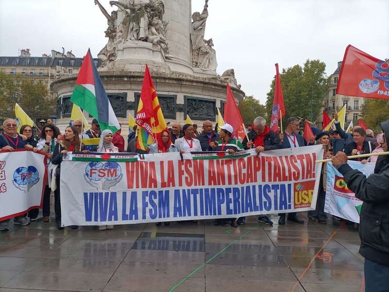 Oggi milioni di lavoratori lottano contro la guerra, per il popolo palestinese sotto le bandiere della FSM.