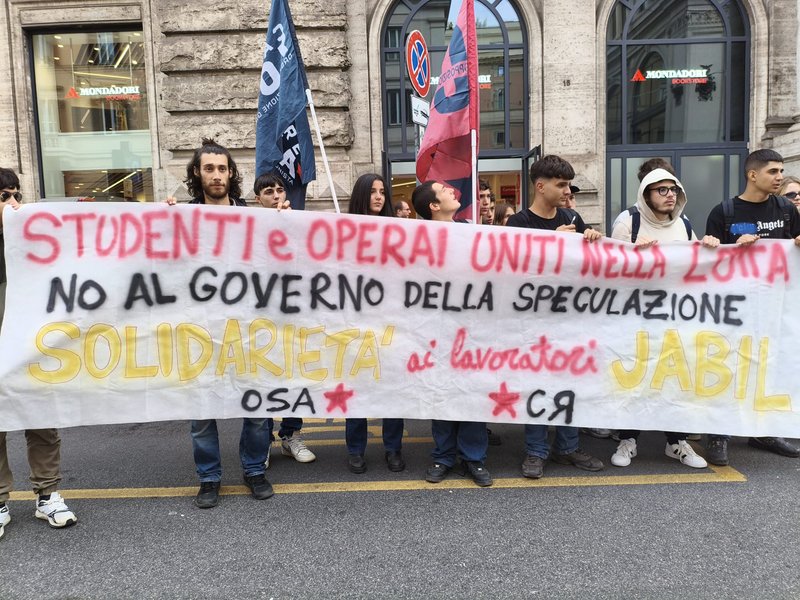 Anche gli studenti hanno portato oggi la loro solidarietà nel corteo Jabil, consapevoli che la battaglia operaia per l’industria è anche la battaglia per il futuro di un’intera generazione. Da questa unità nasce la prospettiva di una grande manifestazione nazionale, che vedrà insieme operai, lavoratori, studenti, tutti coloro che non accettano di vivere in un Paese ridotto a mercato di conquista e base di produzione bellica.