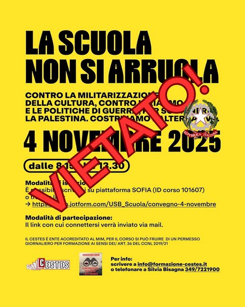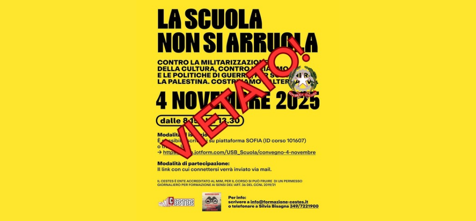 Le mani della Destra sulla Scuola: l'assemblea di USB del 1 novembre a sostegno del Cestes, dei diritti costituzionali, della libertà di espressione