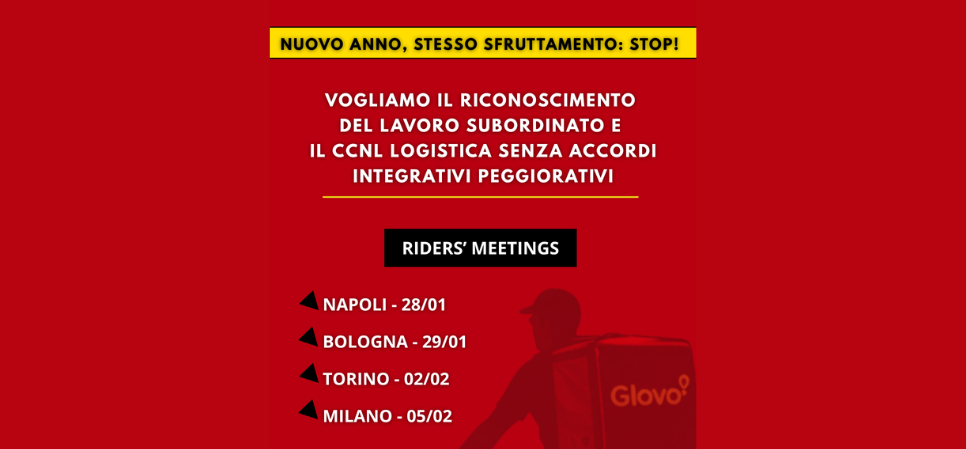 Nuovo anno, stesso sfruttamento: la lotta dei rider continua! Slang USB lancia le assemblee territoriali