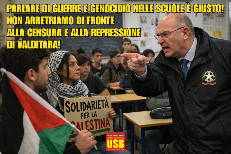 Di che cosa stiamo parlando? Cosa stiamo leggendo sui giornali in questo momento? Il terrorismo psicologico, l'instaurarsi di un controllo preventivo che prova a ledere la libertà di insegnamento e l'avvento di un clima autoritario che vorrebbe blindare le scuole all'interno di temi calati dall'alto. Cos'è la par condicio proposta da Valditara? Quando parliamo di fascismo propone di far intervenire un fascista dichiarato? Quando parliamo di antisemitismo dovremmo lasciare spazio di intervenire ad un nazista orgoglioso? Quando parliamo di genocidio con Francesca Albanese dovremmo mostrare i video del Ministro sionista Itamar Ben-Gvir mentre distrugge le case palestinesi in Cisgiordania?