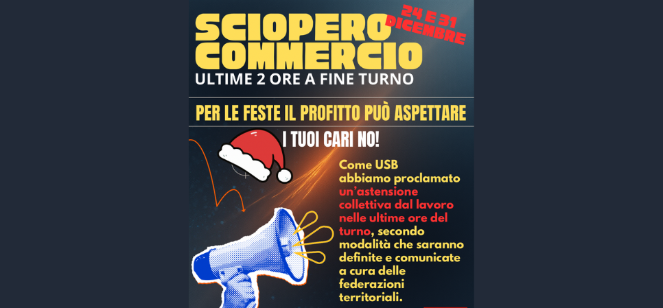 Per queste ragioni, di fronte al progressivo slittamento degli orari di apertura anche nelle giornate prefestive, ancora una volta mettiamo a disposizione delle strutture territoriali e dei lavoratori uno sciopero delle ultime ore a fine turno nelle giornate del 24 e 31 dicembre 2025, che sarà articolato e dettagliato nelle proclamazioni locali.