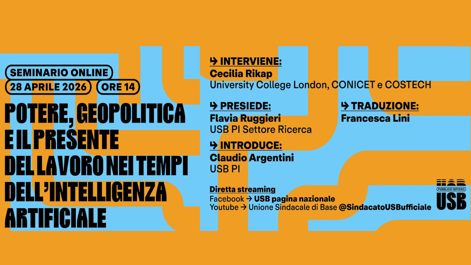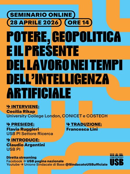 Seminario online USB PI: “Corporate power, geopolitics and the present of labour in AI times" 28 Aprile 2026 ore 14