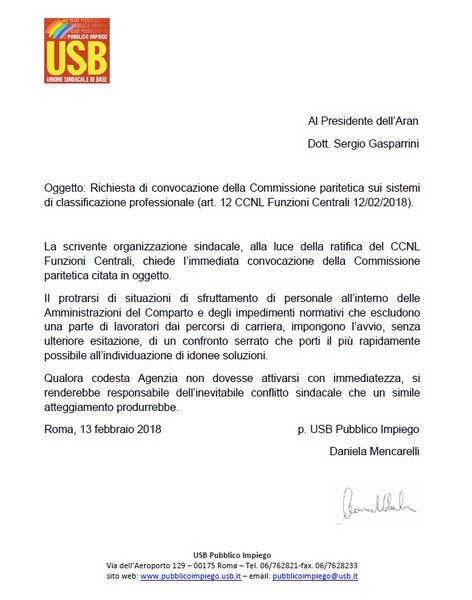 USB, all'indomani della firma definitiva del CCNL Funzioni Centrali, chiede l'immediata convocazione della Commissione sull'Ordinamento professionale