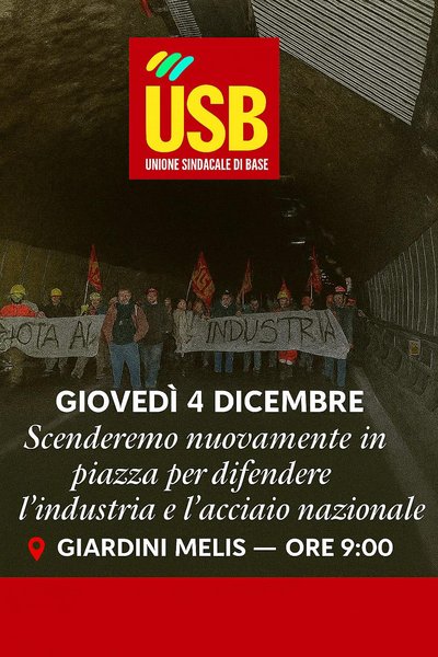 Vertenza acciaierie e futuro industria: USB Genova aderisce allo sciopero dei metalmeccanici genovesi del 4 dicembre